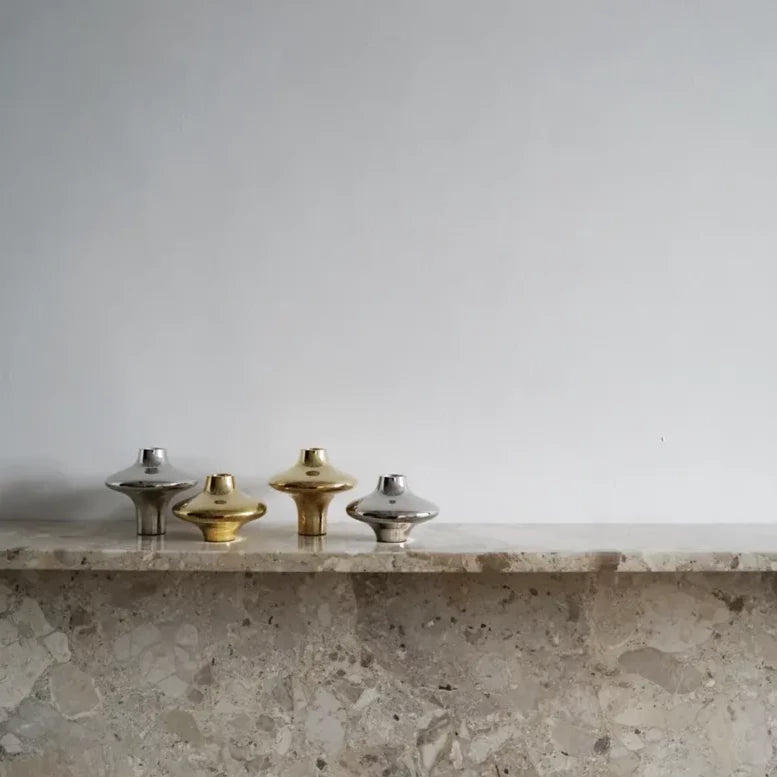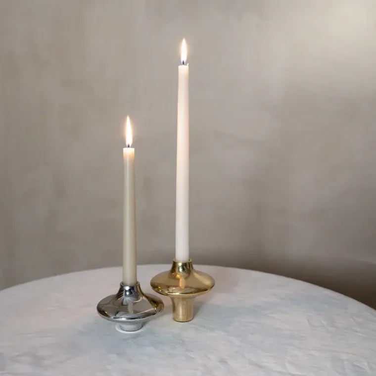 A timeless shape - inspired by two silhouettes staged together, silver and gold, large and small - Creating a calm and warm aesthetic - Use it with candles or without - Sold individually