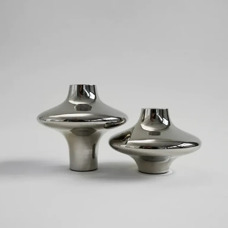 A timeless shape - inspired by two silhouettes staged together, silver and gold, large and small - Creating a calm and warm aesthetic - Use it with candles or without - Sold individually
