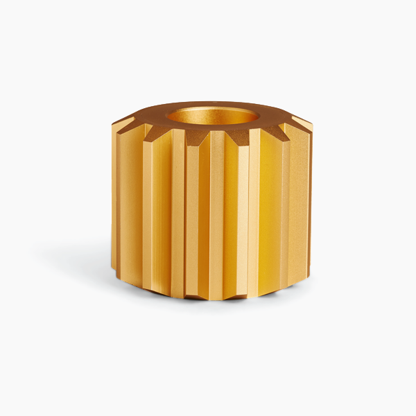 New Works’ Gear candleholder gets its unique character from an industrial, angular design combined with shiny, anodized metal. The designer Rikke Frost found inspiration for the Gear candle holders after a visit to an engine museum in Copenhagen. The aesthetics of old diesel engines create a stunning contrast with the glimmering surfaces, which reflect the light of classic taper candles in a beautiful and interesting way.