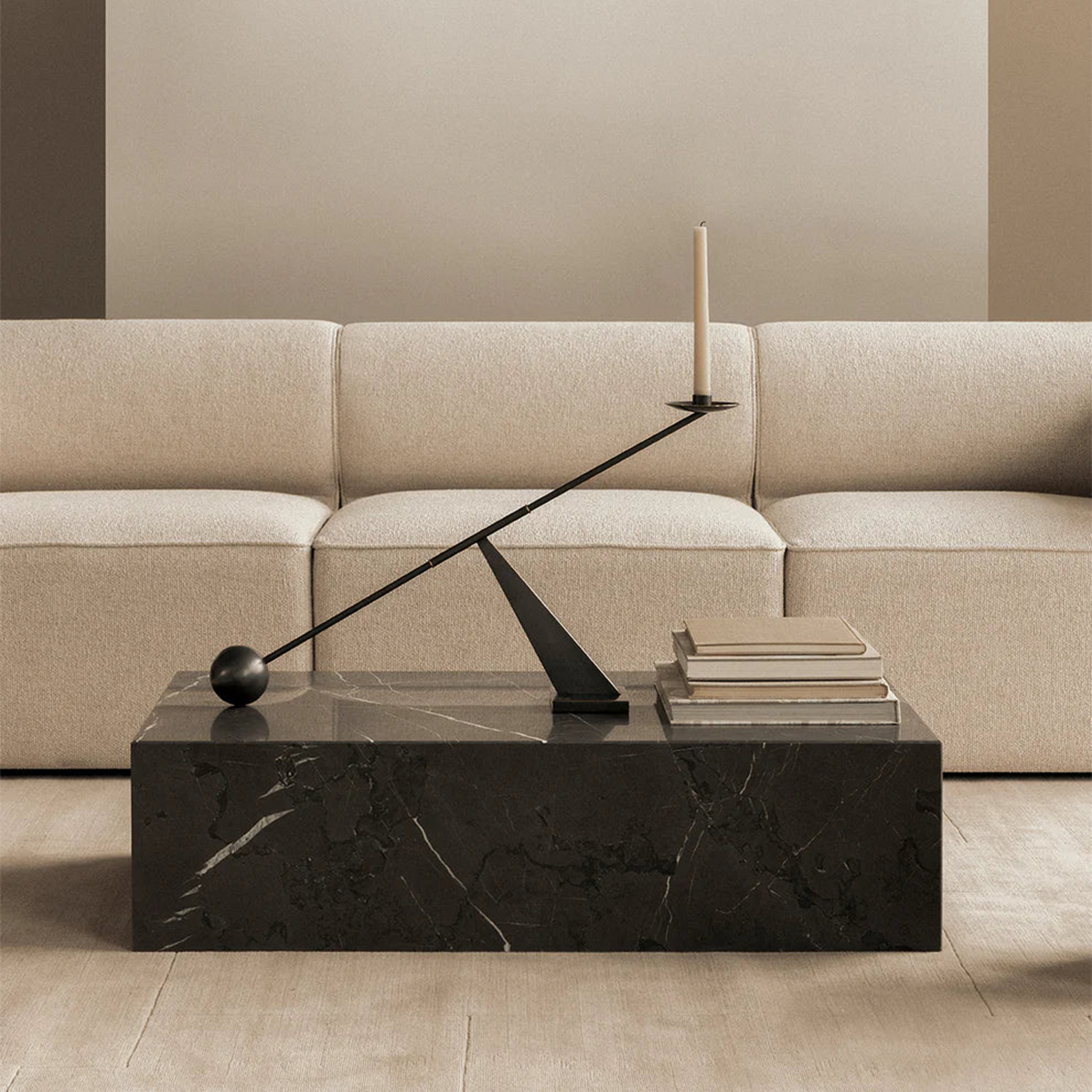 Interconnect Candle Holder is a bold and illuminating centrepiece of exaggerated proportions, designed for Audo by Colin King. As a source of cosy candlelight, it is characterised by its deceptively simple geometric form: a sphere, an angle and a line, which unite to create a unique design. Available in polished brass, bronzed brass or painted steel, it goes beyond its intended use to function as a sculpture.