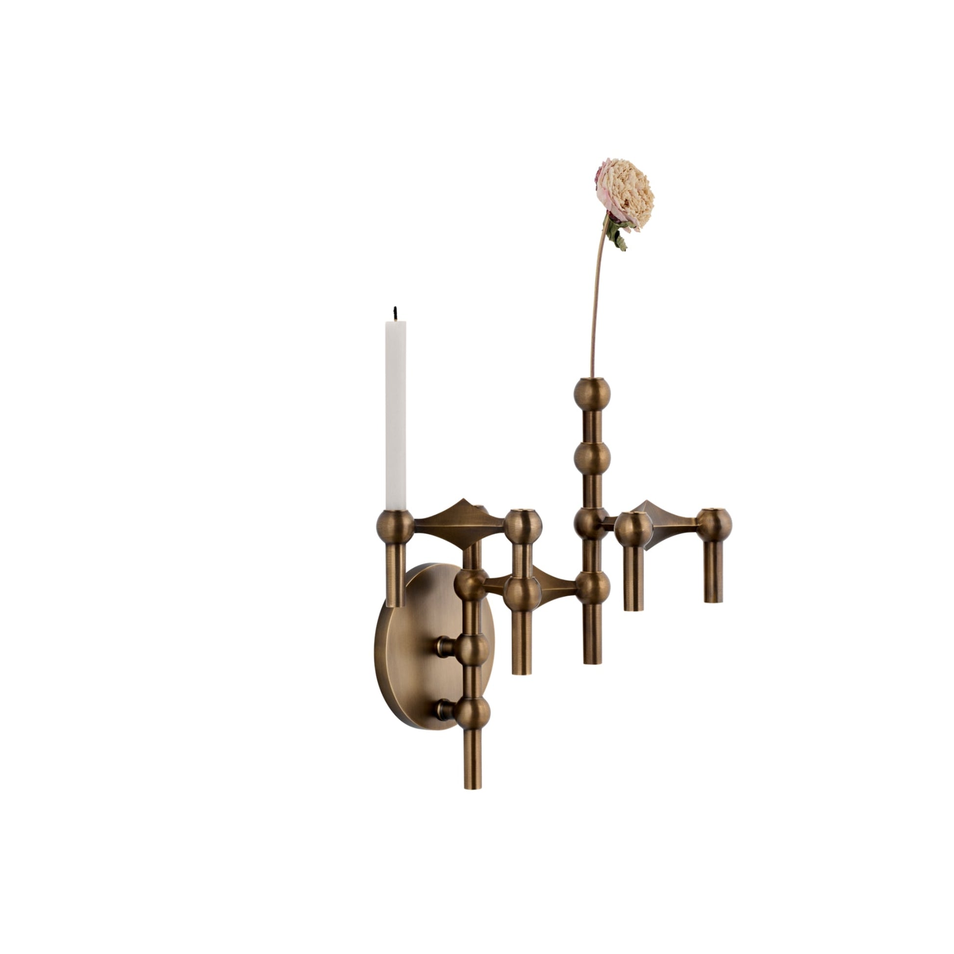 Build up your sculpture from the base of the wall hanger with your collection of candle holders. We recommend placing a maximum of 25 and a minimum of 5 candle holders on the wall hanger when creating your wall sculpture to obtain the best visual base.